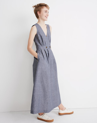 Wrap-effect linen-blend midi dress button waist midi dress madewell