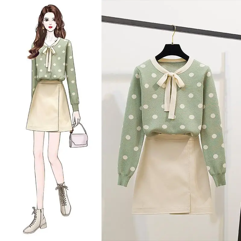 mini skirt set polka dot sweater women polka dot sweater outfit