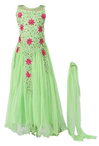 Soft Net Green Embroidered Long Gown one piece traditional gown