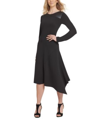 DKNY Faux-Leather-Trim Asymmetrical dkny black dress macys