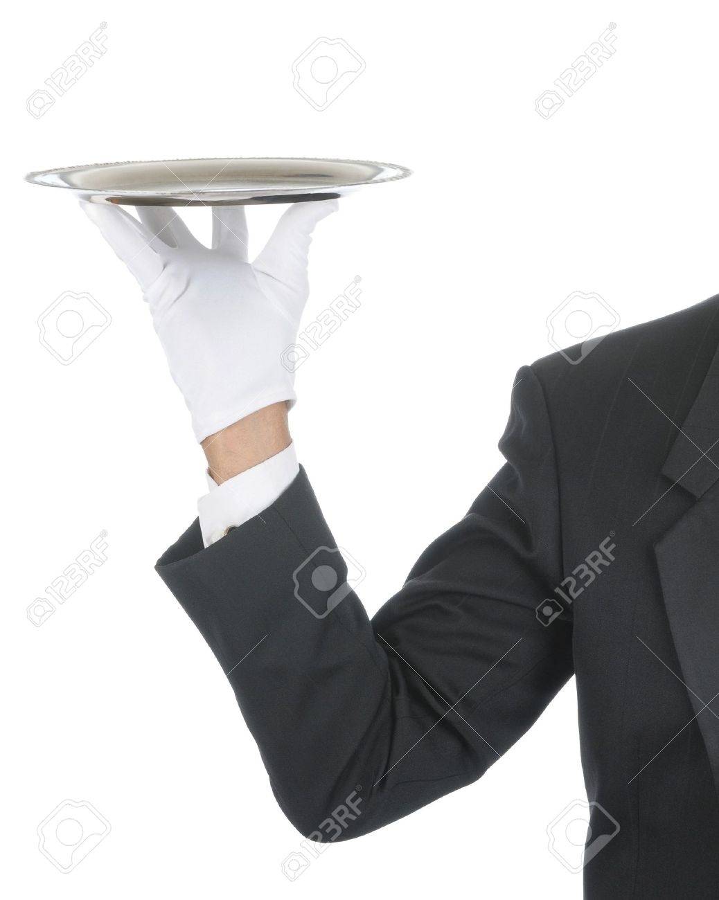 Butler Wearing Tuxedo And Formal Gloves butler gloves black