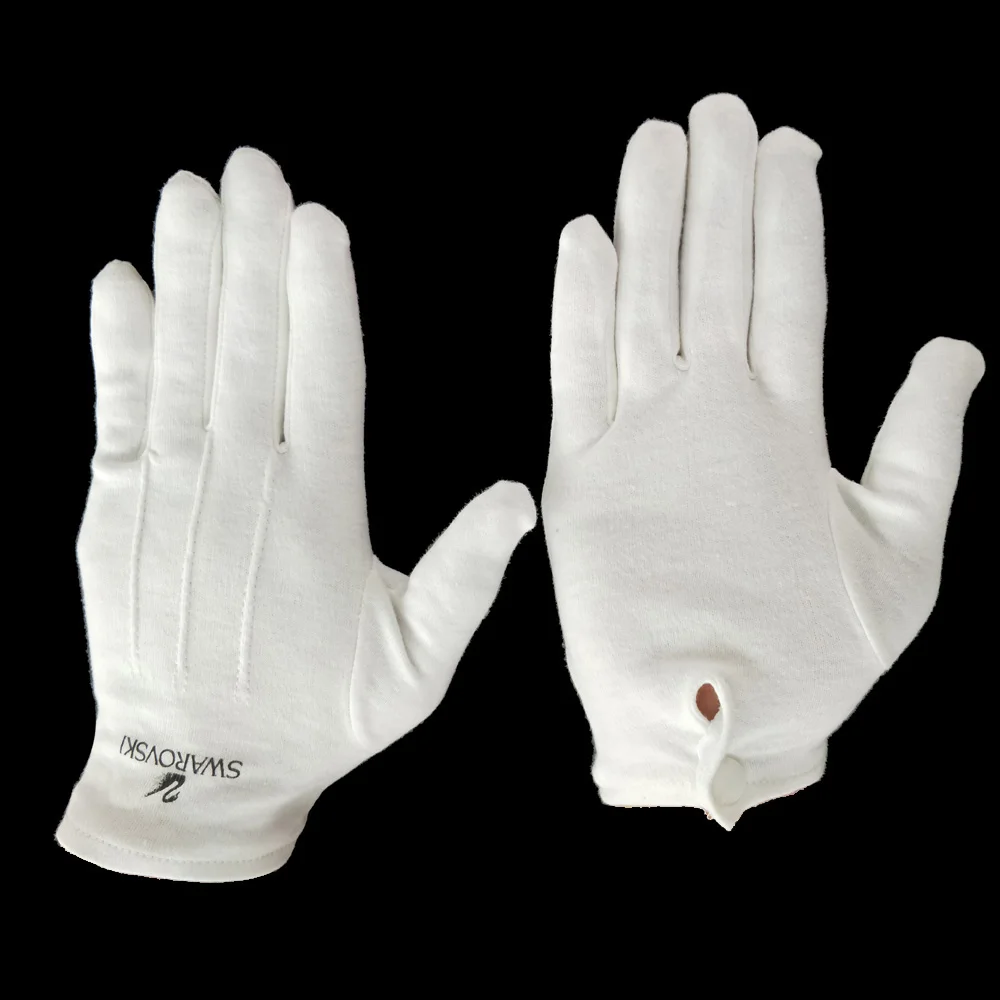 White Cotton Button Snap 3 Stripes butler gloves black