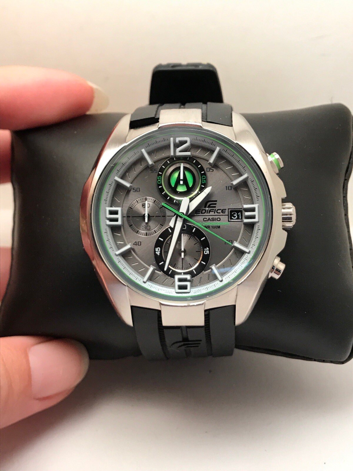 Gray Green Dial Chronograph Watch Black casio edifice ef 529