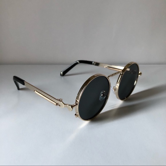 black and gold round frame sunglasses