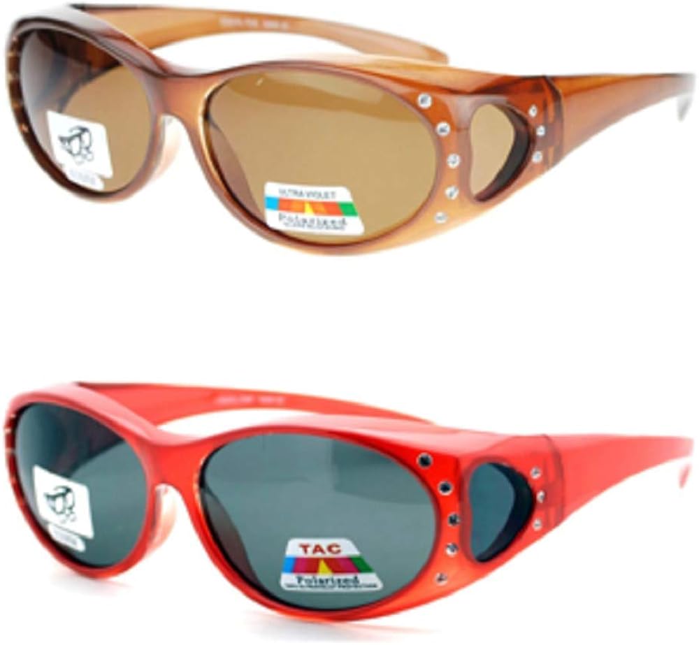 2 Pair Polarized Rhinestone Oval Lens tan through sunglasses