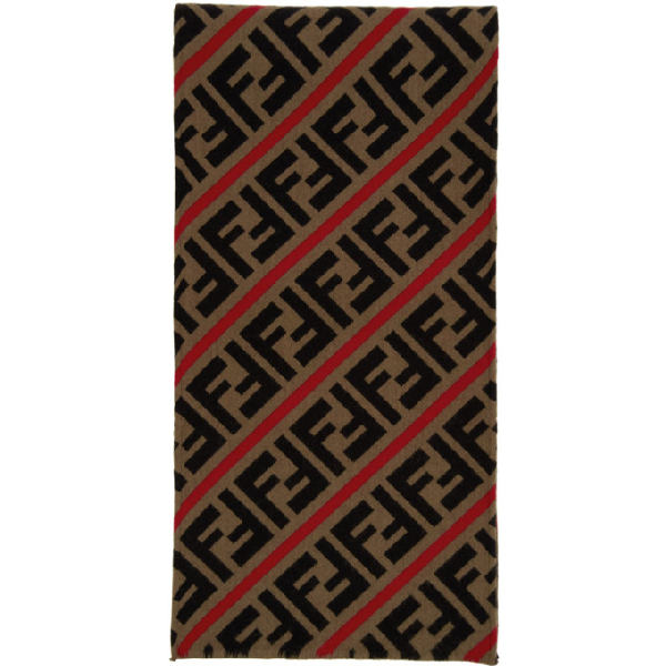 Fendi Red And Brown Wool Forever Scarf fendi scarf red