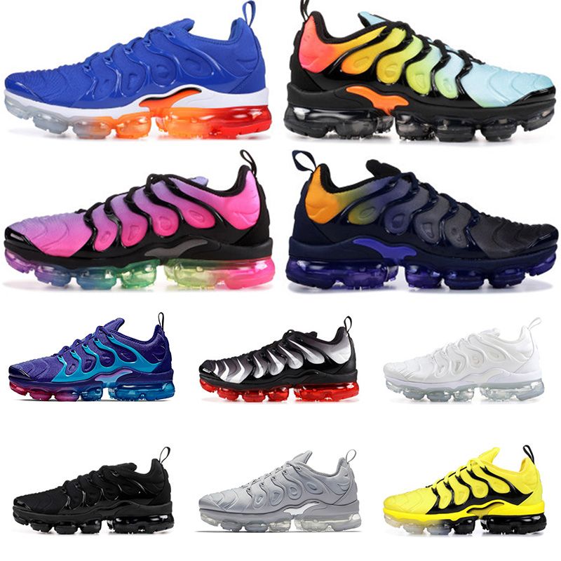 Acheter 2020 Vapormax Nike TN Plus Hommes Femmes Chaussures De Course Triple Noir Blanc Kaki vapormax plus betrue 2020