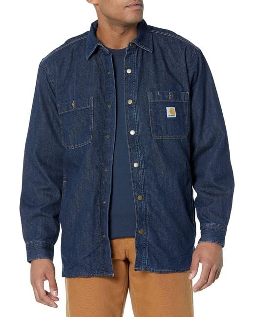 Carhartt Big & Tall Relaxed Fit Denim Fleece Lined Snap-front Shirt Jac in Blue for Men | Lyst carhartt am95