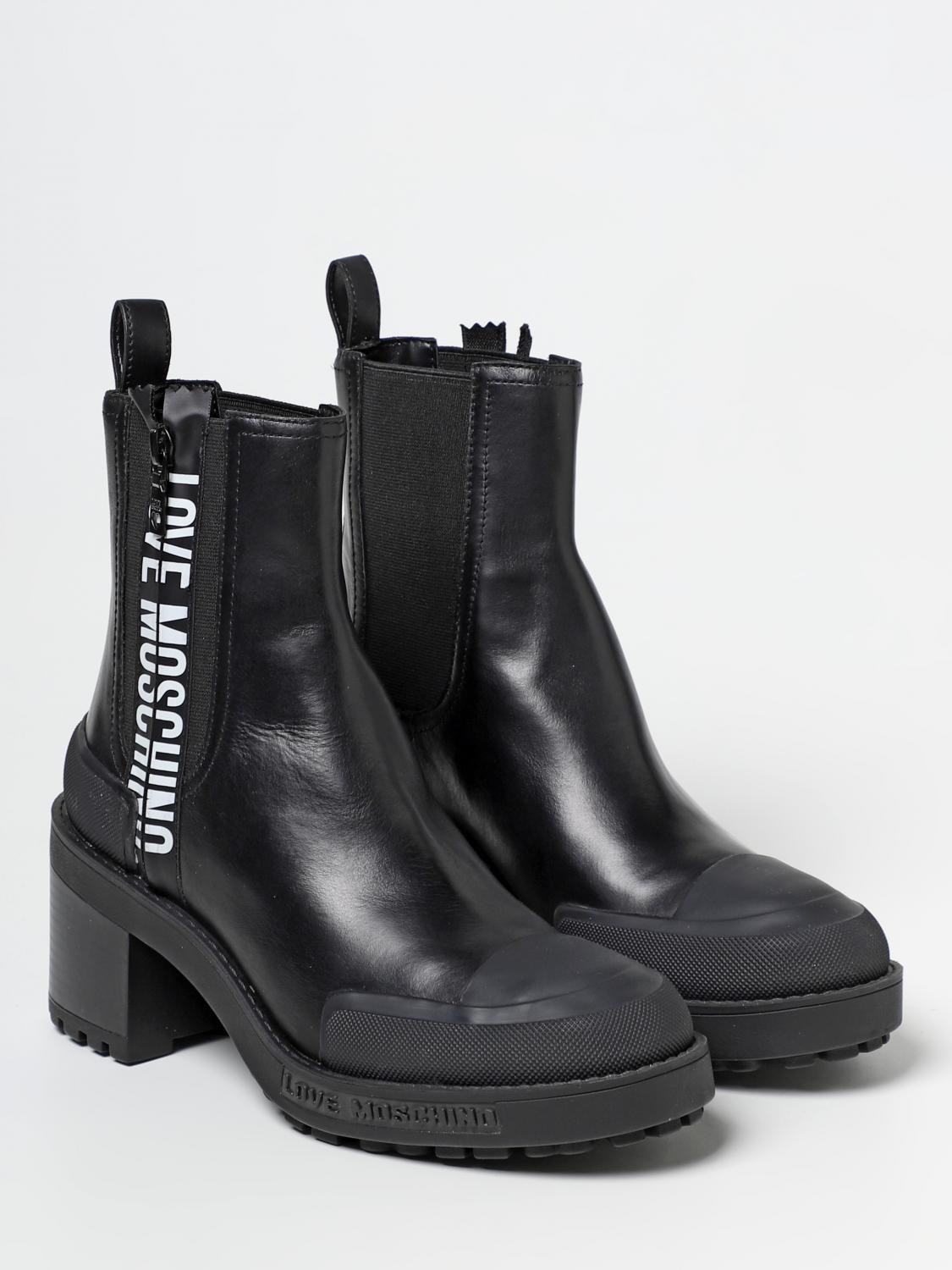 LOVE MOSCHINO: Bottines plates femme - Noir | Bottines Plates Love botte moschino femme