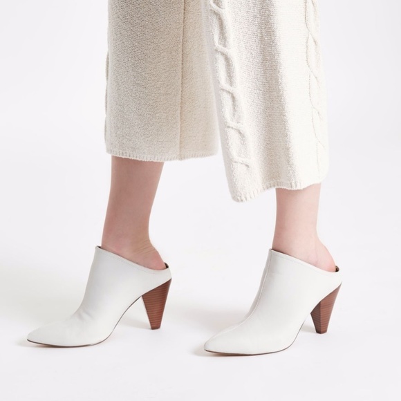 White Pointed Toe Cone Heel Mules river island white mules