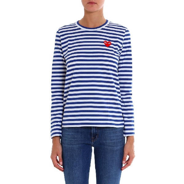 Long Sleeve Heart Logo Stripe Tee comme des garçons play blue & white striped heart shirt