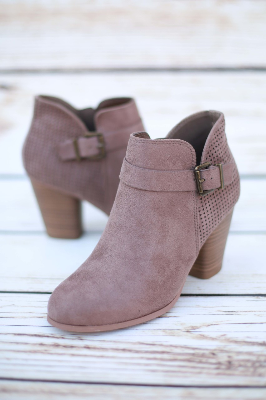 Julia Taupe Perforated Suede Booties taupe perforated booties