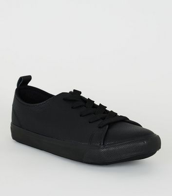 Wide Fit Leather-Look Lace Up Trainers new look wide fit trainers