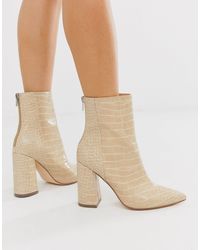 Pointed Block Heeled Boot in Beige london rebel block heel ankle boots