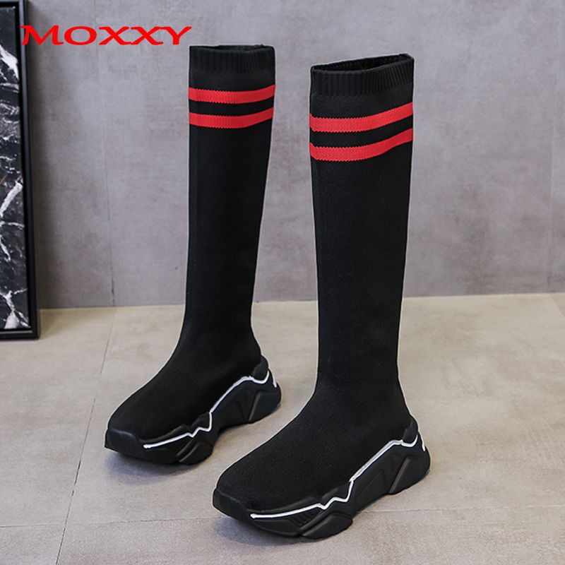 2019 New Fashion Sport Sock Boots Women over the knee fabric sneakers