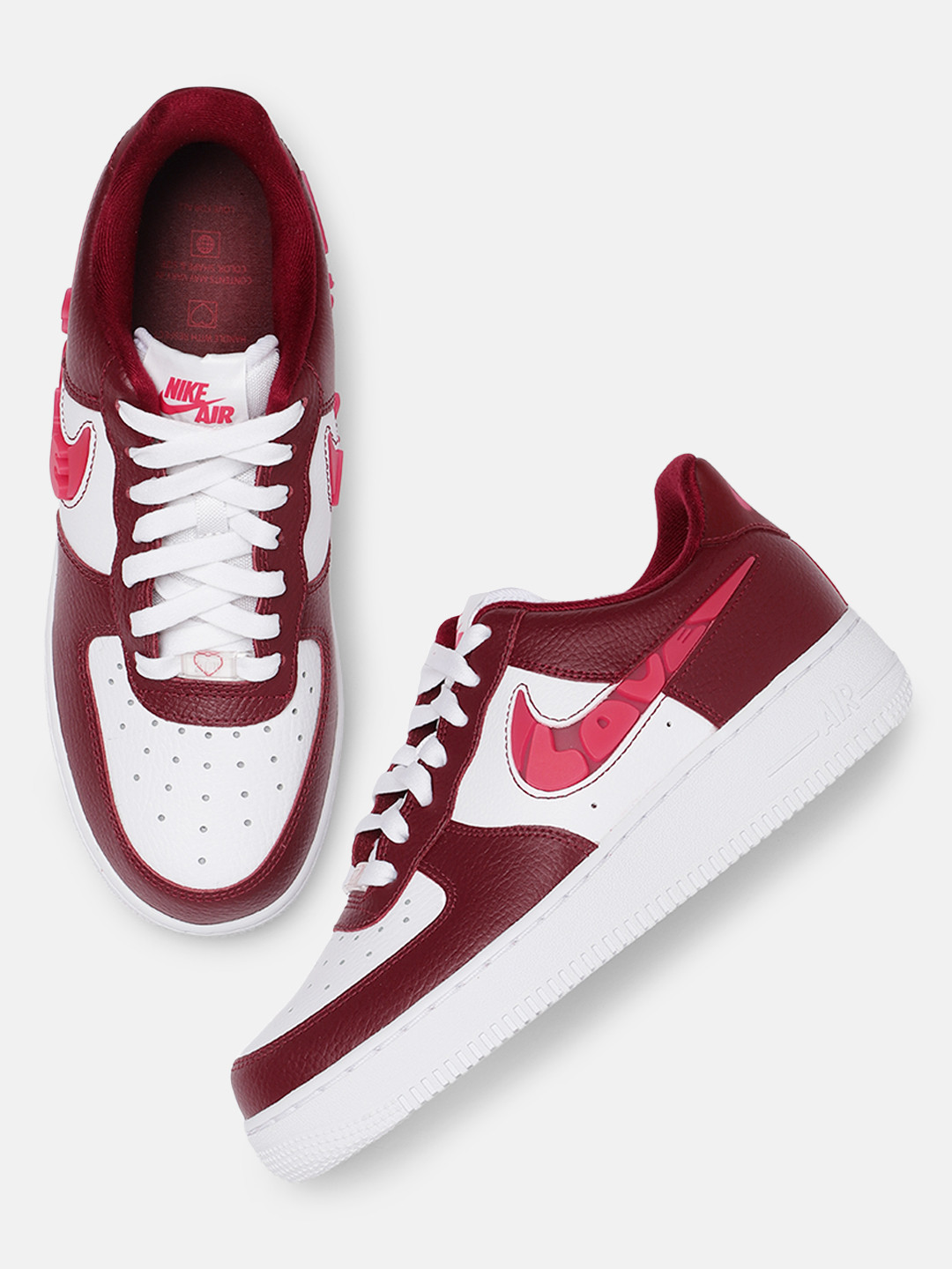 Buy Nike Women White & Maroon AIR FORCE 1 '07 SE Colourblocked Leather Sneakers - Casual Shoes maroon air force 1 womens