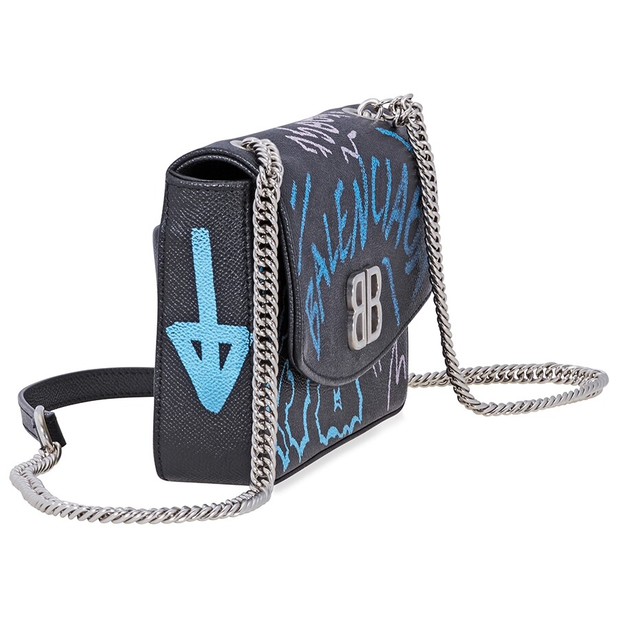 Balenciaga BB Graffiti Leather Wallet on Chain | Neiman Marcus balenciaga graffiti chain bag