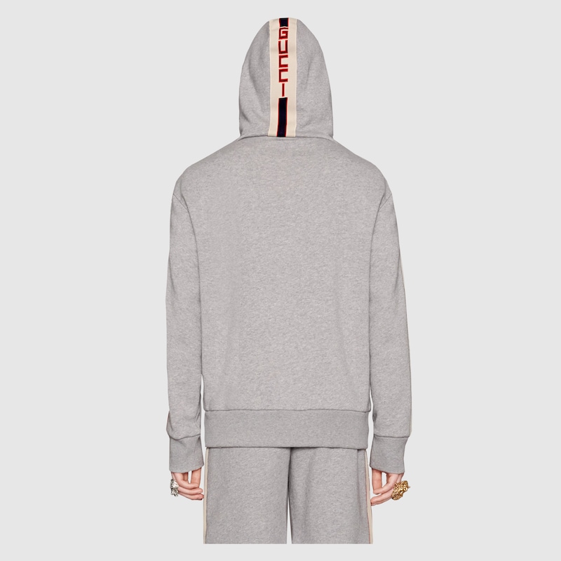 Felpa con cappuccio e zip con nastro Gucci | GUCCI® IT