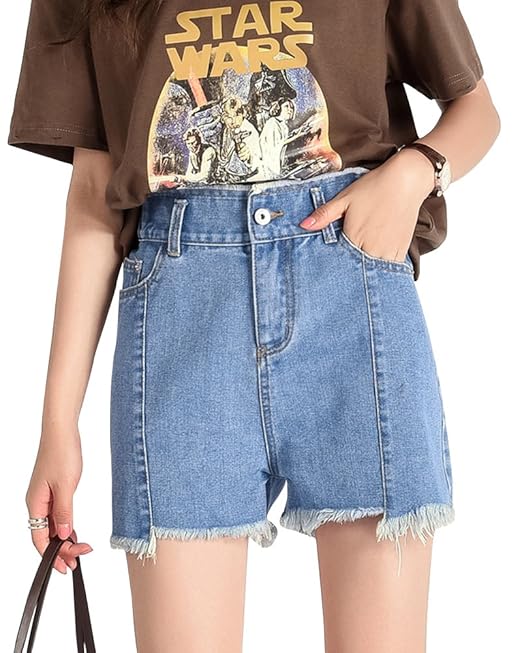 Pantaloncini Corti Eleganti Donna Shorts A Vita Alta in Jeans con pantaloncini corti eleganti