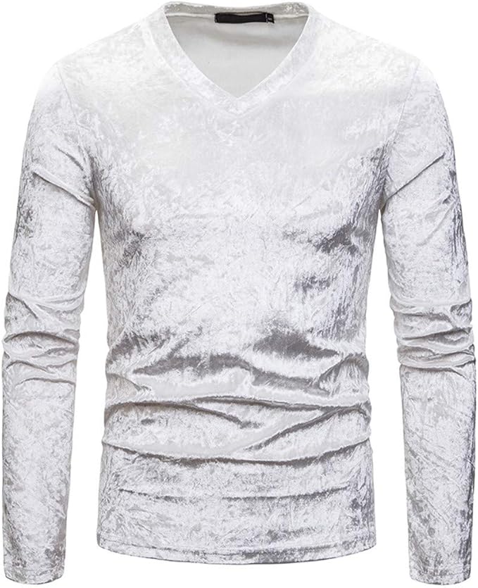Magliette Uomo-YanHoo Velluto Scollo a V Blouse Tinta Unita Polo t shirt velluto uomo