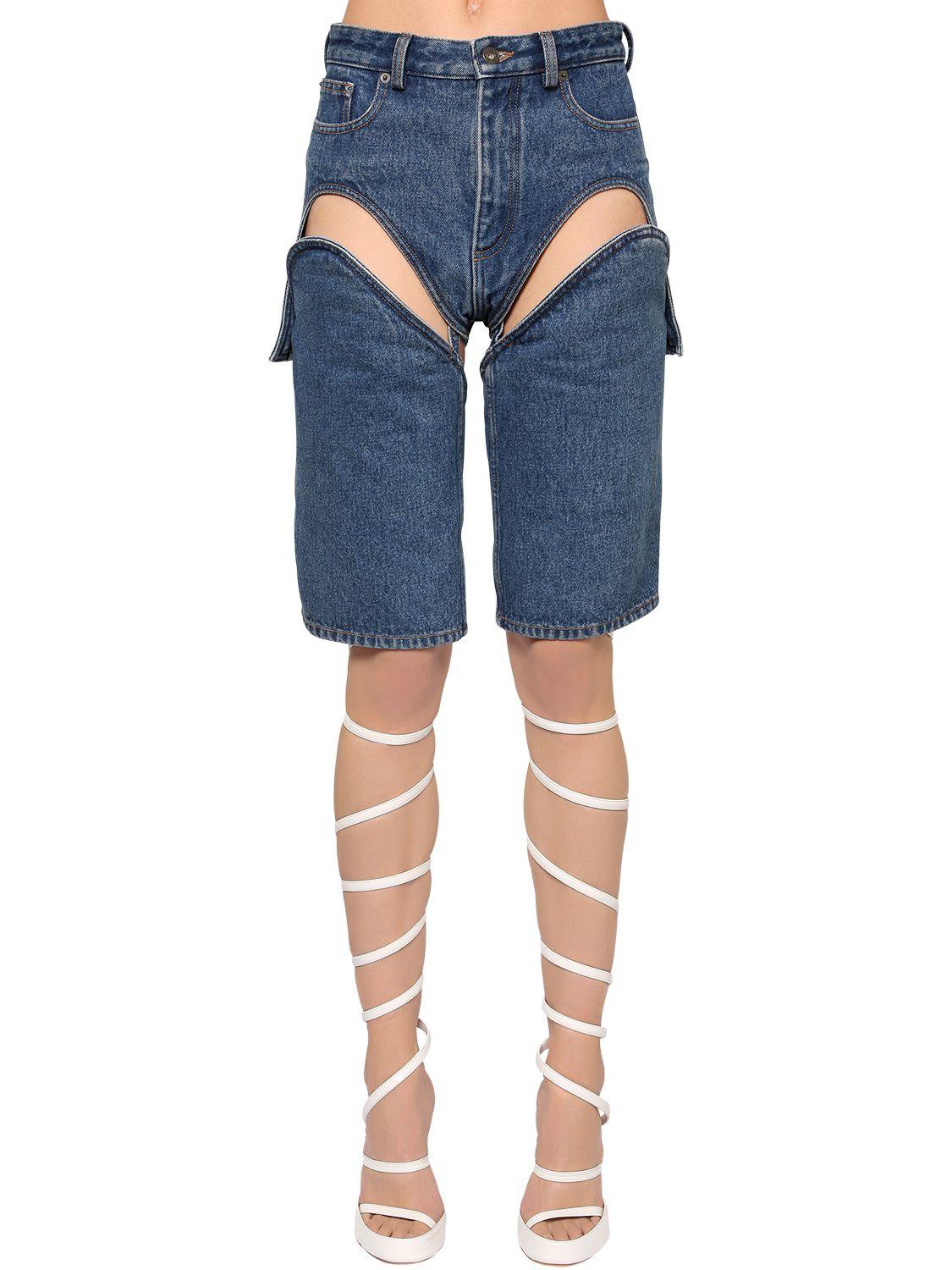 Y. Project Cutout Cotton Denim Shorts y project denim shorts