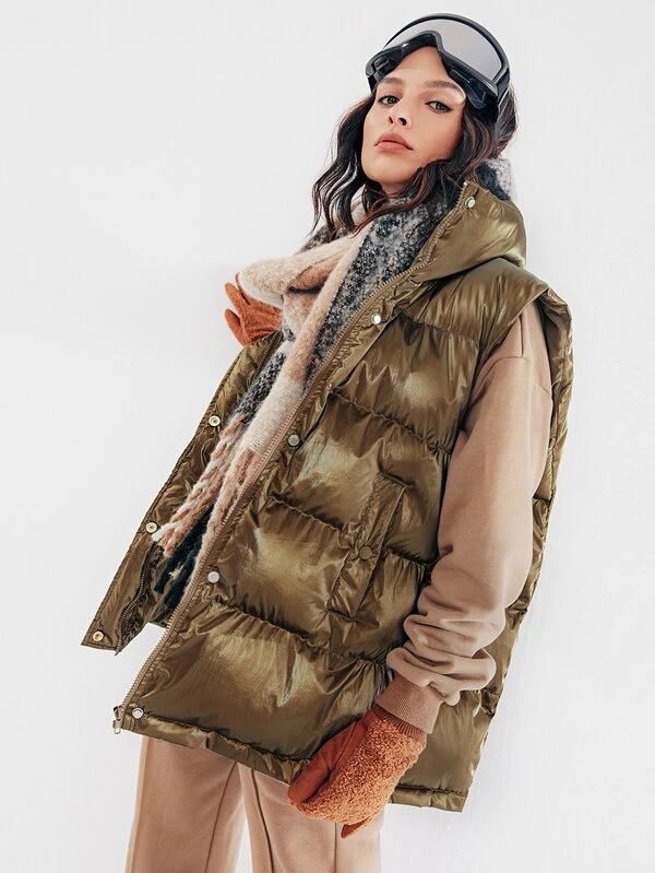 Doudoune sans manches à capuche unicolore | Mode en ligne | SHEIN FRANCE shein doudoune sans manche