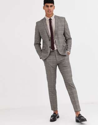 Jack \u0026 Jones Premium slim fit prince of wales check pocket chain suit jacket in brown | ASOS jack and jones costume