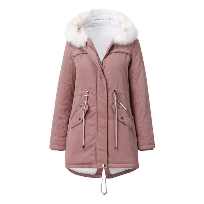 Parka Femme mi-longue à capuche de Marque plus de velours Parka Femme en fausse fourrure Rose - Cdiscount Prêt-à-Porter parka femme capuche fourrure
