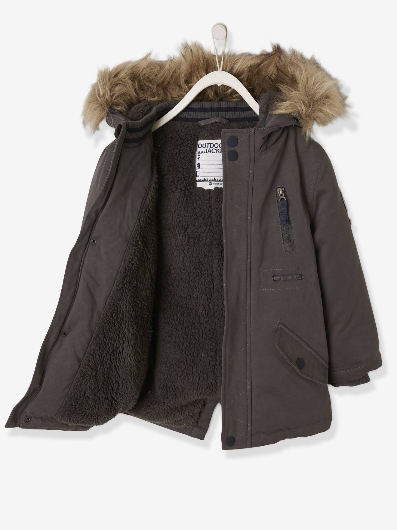Plush-Lined Parka for Boys - dark grey, Boys parka vertbaudet
