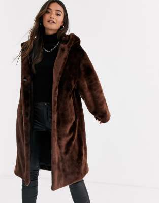 ASOS DESIGN - Manteau en fausse fourrure effet pelucheux avec capuche - Marron | ASOS manteau effet fourrure